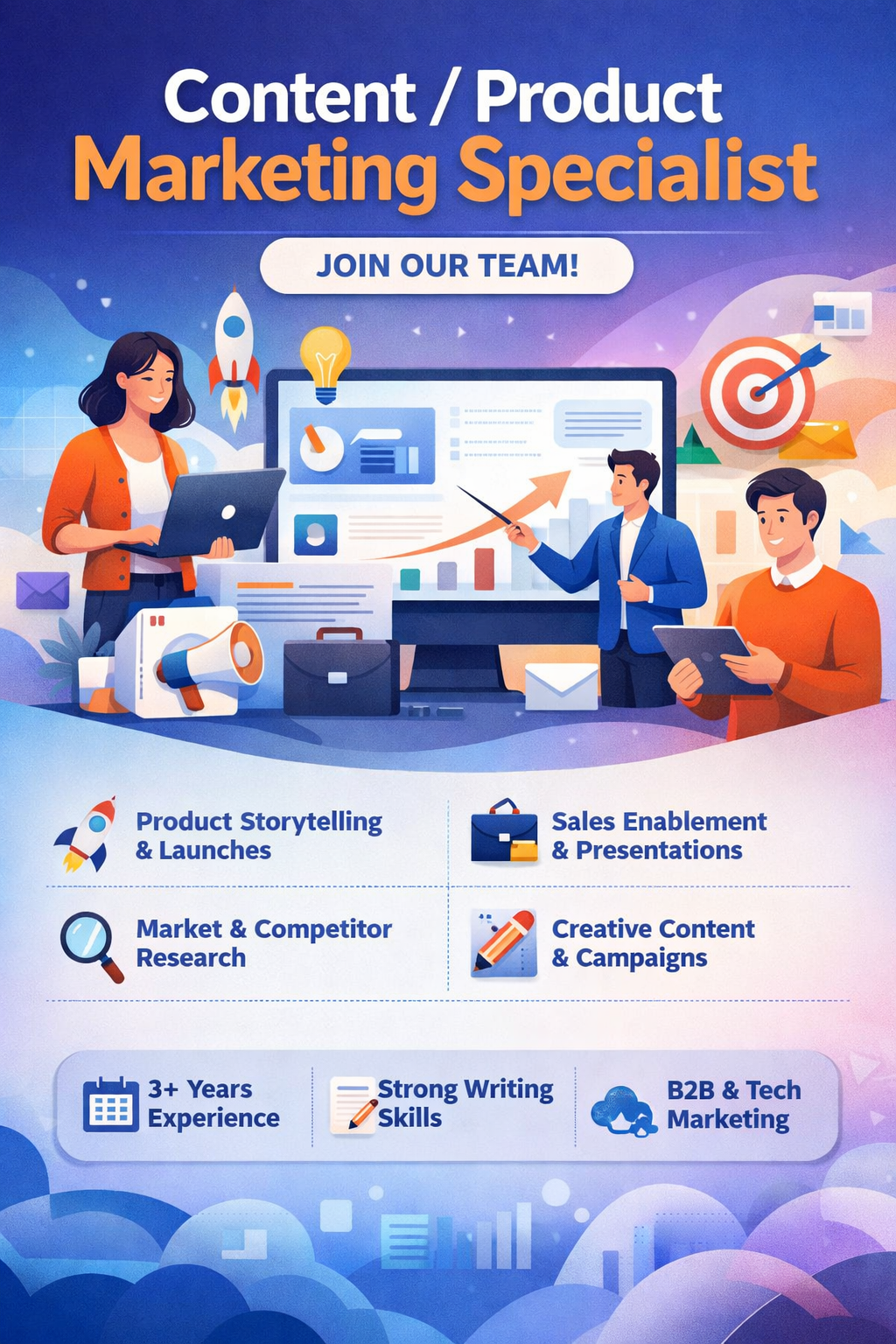We are looking for a Content/Product Marketing Specialist (3+ years experience) who can translate product capabilities into compelling content and market narratives. The role will focus on product storytelling, brand positioning, and marketing content creation that supports product launches, sales enablement, and brand visibility.