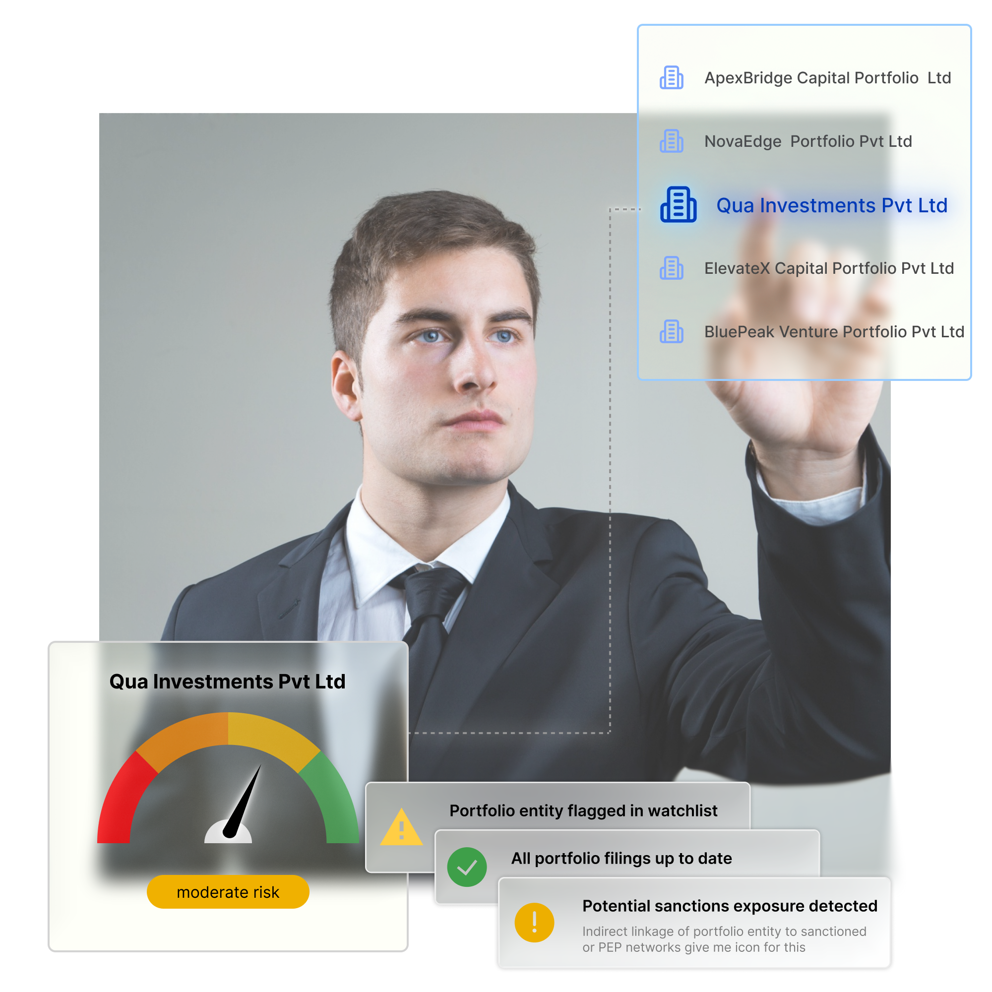 Conduct comprehensive background checks on entities and portfolio to identify financial, regulatory, and reputational risks before onboarding.