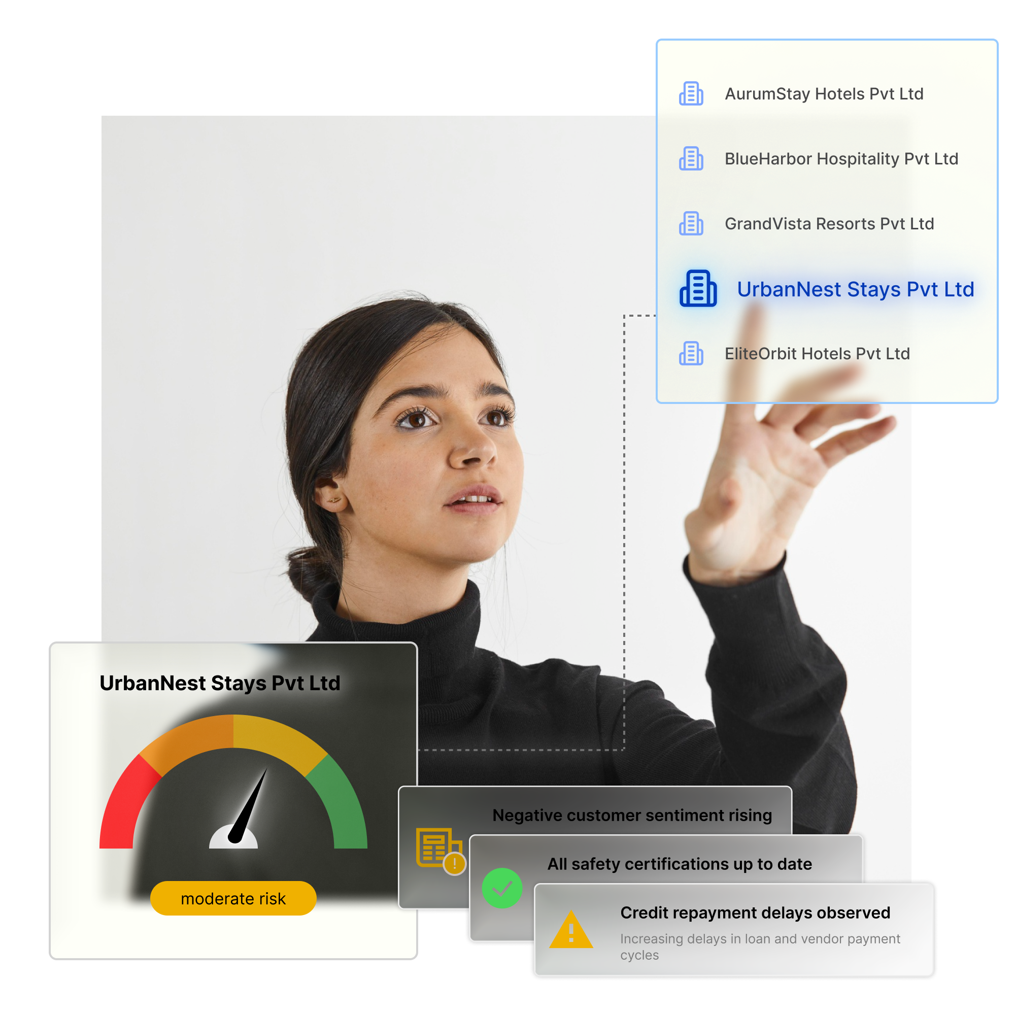 Verify entities instantly across GST, MSME, financials, and other critical parameters—so you can validate and move forward with confidence.